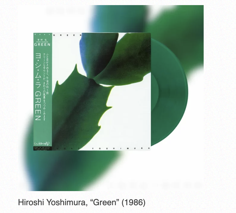 An example above all is Green (1986), the fifth work by composer Hiroshi Yoshimura and a founding pillar of minimal ambient. Recorded amidst the hustle and bustle of what we imagine to be a rapidly changing Tokyo, the record’s pristine stillness offers a line of escape to the noise of heavy vehicles, jackhammers and clanging metal objects that would have dominated the natural soundscape at the time of the city. Even the album cover – a beautifully photographed apartment Schlumbergera – conveys this purity of sound.